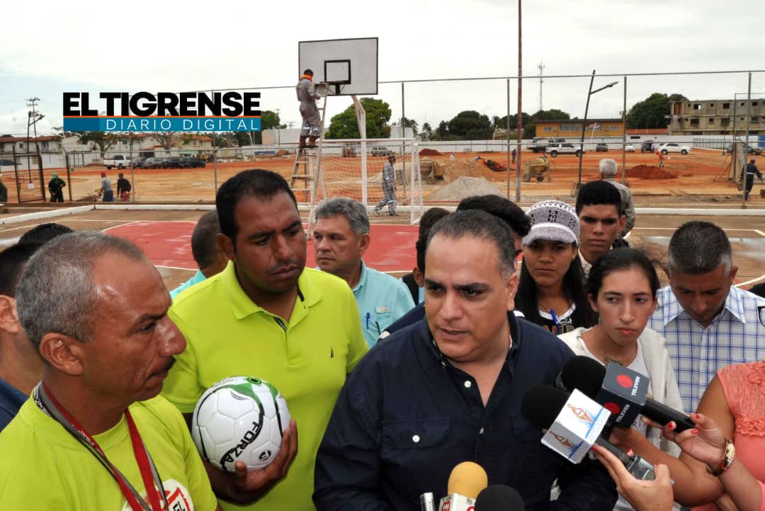 El Tigre.- En horas de la mañana de este martes 18 de febrero, el Alcalde Ernesto Raydan, informó sobre los trabajos de las mejoras realizadas a la cancha deportiva del Liceo Dr. José Rafael Revenga de El Tigre.