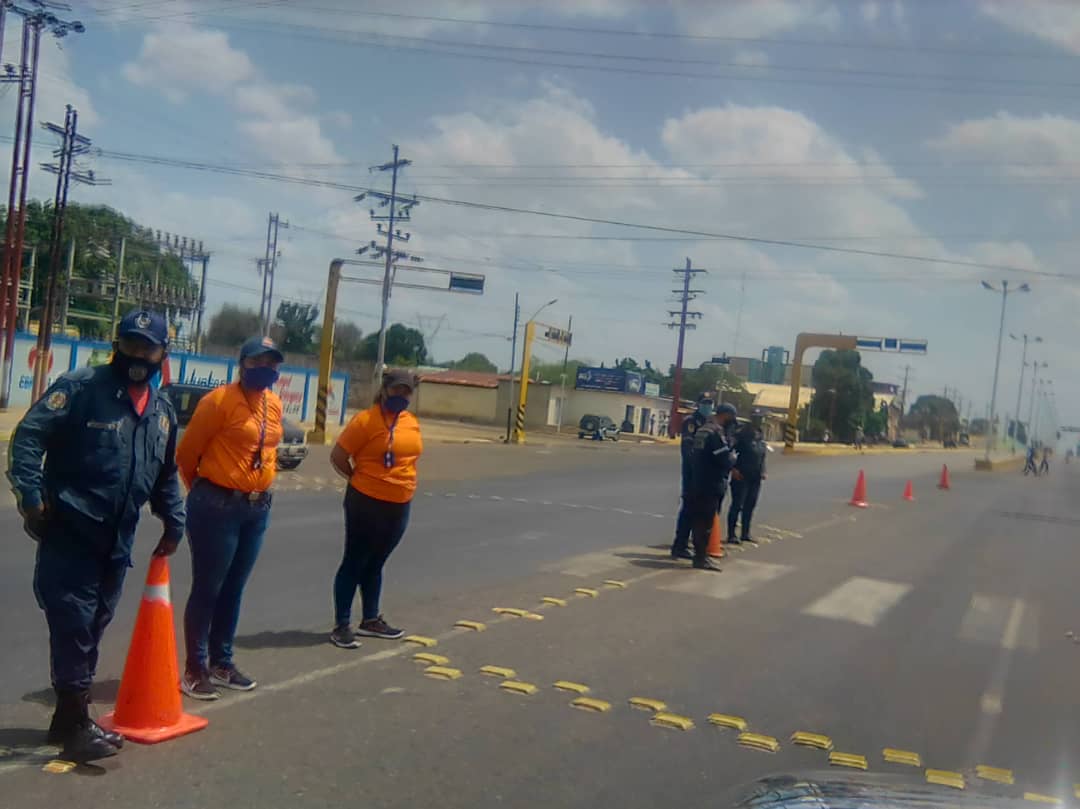 Funcionarios de Protección Civil, Bomberos y Policía del estado Anzoátegui mantienen el punto de control frente a la sede del Instituto Universitario de Tecnología José Antonio Anzoátegui.