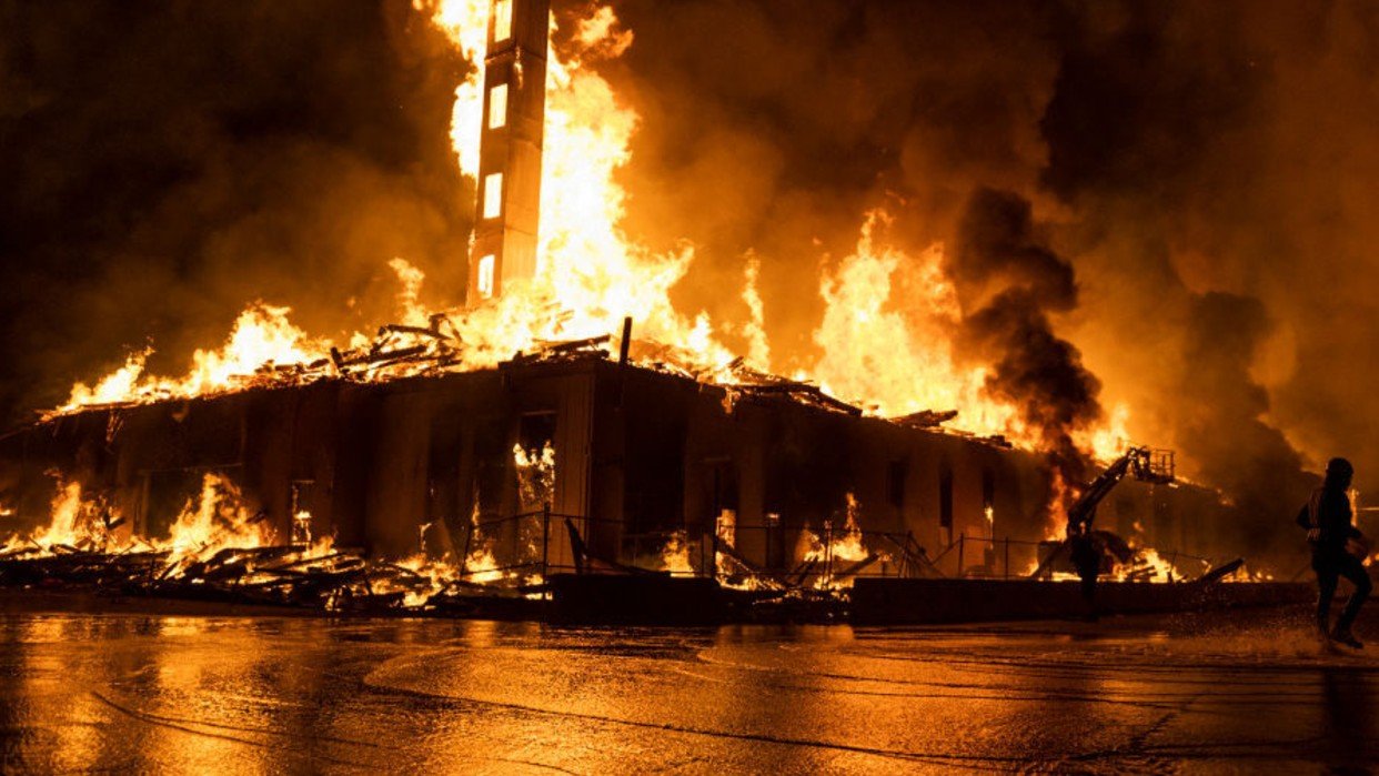Miles de personas presenciaron el incendio en la zona norte de la ciudad, después de que algunos derribaran las barreras que protegían el edificio y rompieran las ventanas.