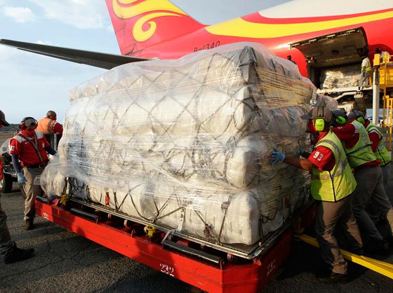 «Ya hemos recibido con este vuelo casi 300 toneladas de cooperación», destacó Rodríguez al contabilizar el aporte total de seis envíos provenientes de China.
