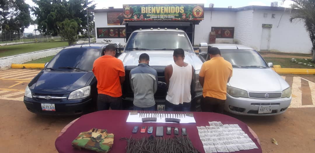 El comandante de Zona N°62, G/B Adolfo Rodríguez Cepeda, informó que efectivos del Destacamento N°628 de la Guardia Nacional Bolivariana (GNB), aprehendieron a los cuatro sujetos durante labores de patrullaje por el sector Museo del Oro.