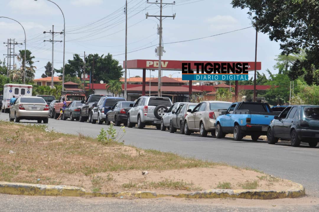 El Tigre.- Conductores en cola en la Estación de Servicio El Caris, ubicada en la intercepción de las avenidas Jesús Subero y Rotaria de El Tigre, llevan 15 días en espera por combustible.