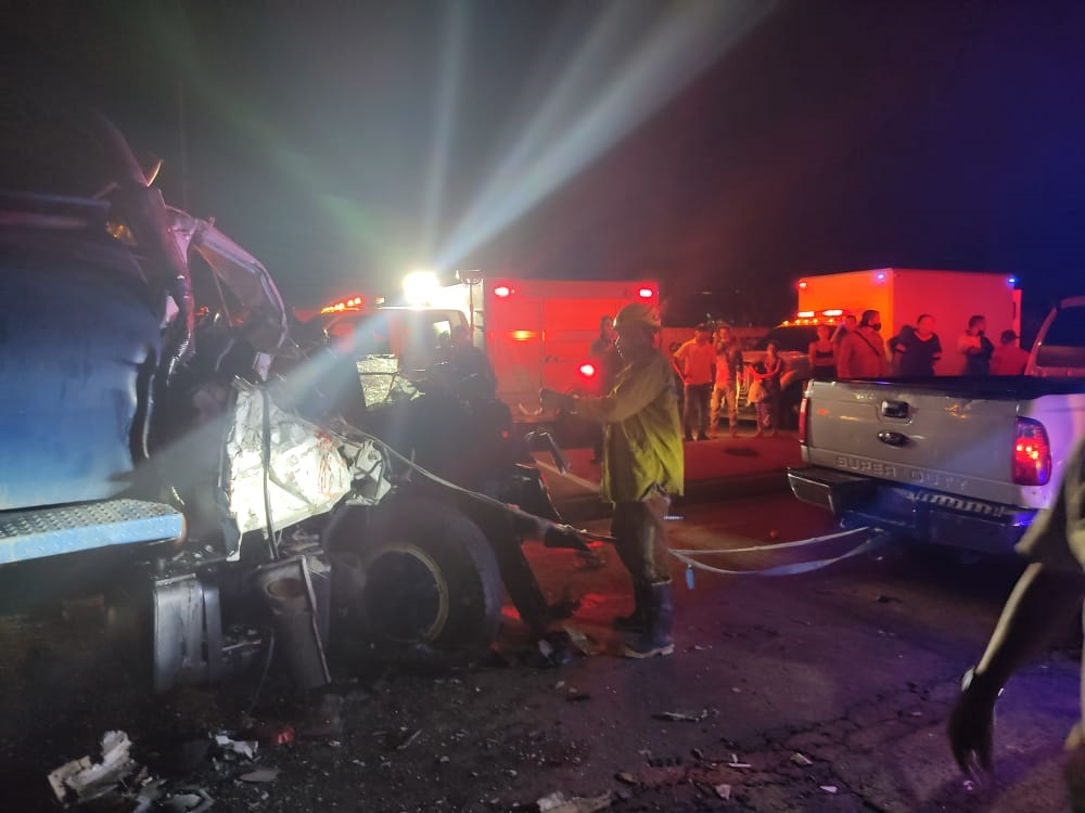 En el impacto resultó muerto el joven identificado como Cruz Miguel Moreno Méndez, al quedar aprisionado en la cabina del camión Chevrolet Kodiak de color blanco, 1995, placas A40CC9A, que transportaba 10.000 litros de agua, según reporte de autoridades. El muchacho viajaba como copiloto.