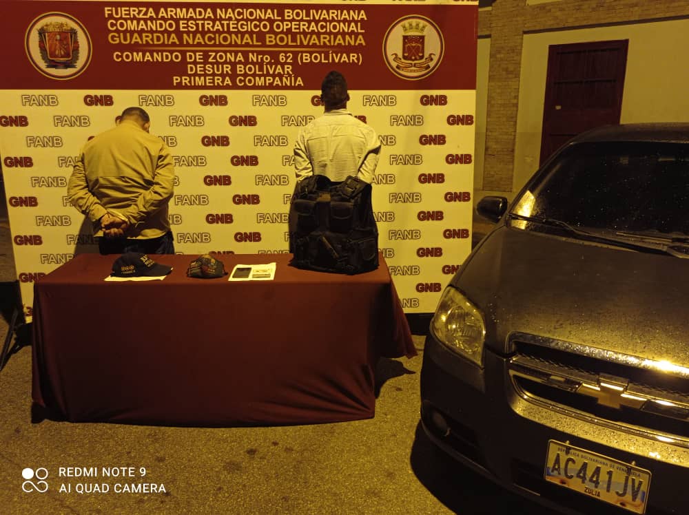 Así lo comunico el comandante de la Zona N° 62 de lo GNB General de Brigada Adolfo Rodríguez Cepeda quien siguiendo lineamientos del MG Fabio Zavarse Pabón manifestó que efectivos del Destacamento de Seguridad Urbana (DESUR), apresaron a los ciudadanos Gregorio Hernández y Wuilfredo Farfán Avilés en la estación de servicio “Bella Vista” ubicada en la población de San Félix.