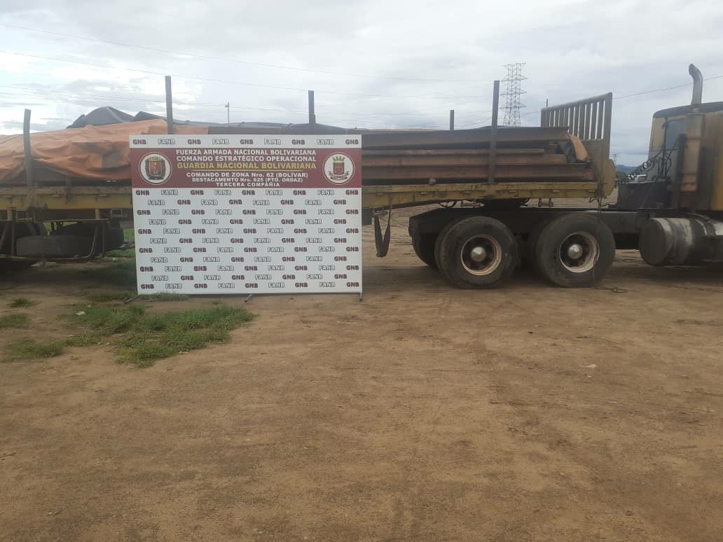 Efectivos de la Guardia Nacional Bolivariana durante labores de patrullaje retuvieron un camión que transportaba rieles de vía ferréa sin poseer la documentación legal que avalara la desincorporación de dicho material.