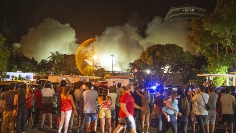El domingo, horas antes de la demolición, el alcalde de Surfside, Charles Burkett, dijo que existía el peligro de que los fuertes vientos de la tormenta Elsa pudieran arrastrar escombros y poner en peligro la vida de los equipos de búsqueda.