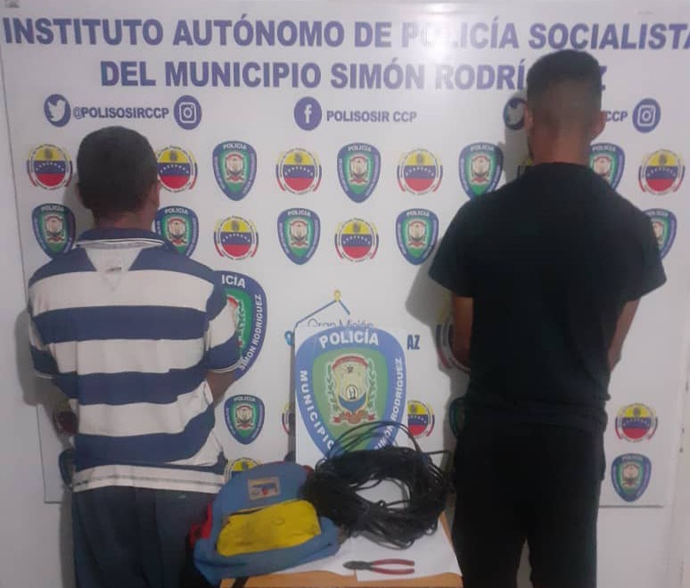 El Tigre – Funcionarios de la Policía del municipio Simón Rodríguez, en la calle Universidad del sector Meneven, detuvieron a dos sujetos que tenían en su poder 27 metros de cable utilizado por la estatal de telefonía CANTV.