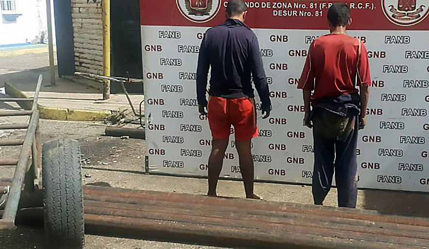 Se pudo conocer que dos de esos hombres fueron aprehendidos cuando empujaban un carretón con seis tubos de 5 metros cada uno, para un aproximado de 800 kilos.