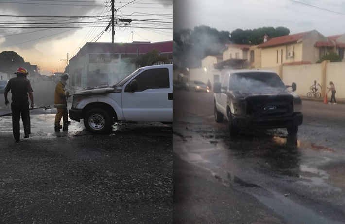 El Tigre.- Una camioneta Ford Super Dutty de color blanco, se incendió en el área del motor, al final de la tarde de este lunes 11 de octubre.