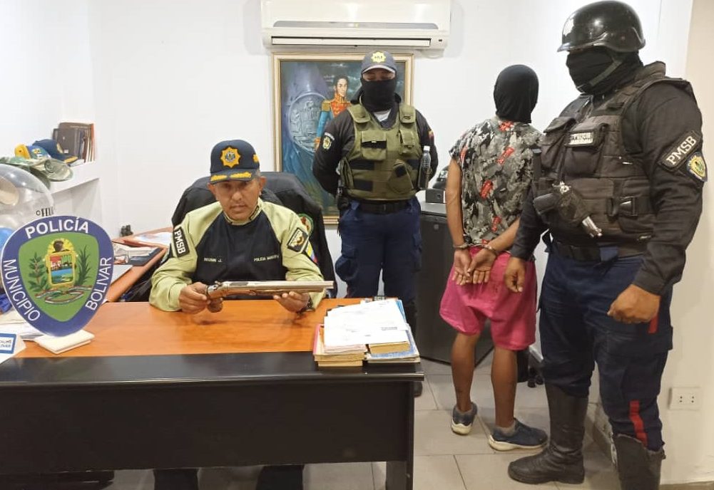Barcelona.- Funcionarios de la Policía del municipio Simón Bolívar, adscritos a la Dirección de los Cuadrantes de Paz y de Patrullaje General, realizaron la detención de un sujeto que aparentemente está implicado en los delitos de robo con amenaza a la vida y porte ilícito de arma de fuego.