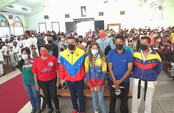Pariaguán.- En el marco de la celebración del Día del Deporte este 6 de enero, el alcalde del municipio Francisco de Miranda, Ángel Vásquez, asistió al santuario Santo Cristo de los Milagros de Pariaguán, dónde se ofició la misa ecuménica, en compañía de las glorias deportivas y demás atletas de la zona.