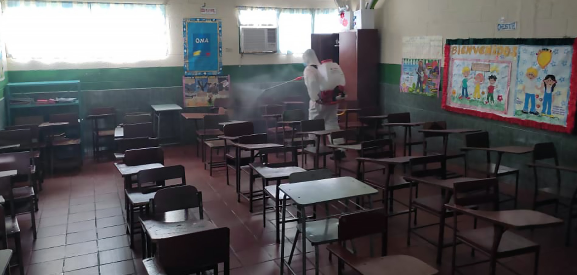 El director de PC Guanipa, Jorge Mujica, enfatizó que se utilizaron 1500 litros de solución a base de hipoclorito de calcio para la desinfección de los espacios escolares.