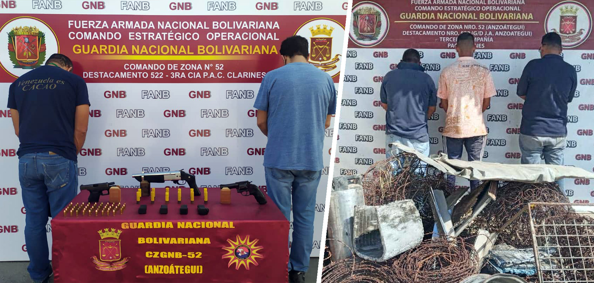 Barcelona.- Durante labores permanentes de patrullaje, efectivos del Comando de Zona N° 52 de la Guardia Nacional Bolivariana (GNB), lograron desmantelar seis Grupos Estructurados de Delincuencia Organizada (GEDO) al transcurrir la primera semana del mes de febrero, que dio como resultado la captura de 20 personas y la incautación de siete armas de fuego, en distintos municipios del estado Anzoátegui.