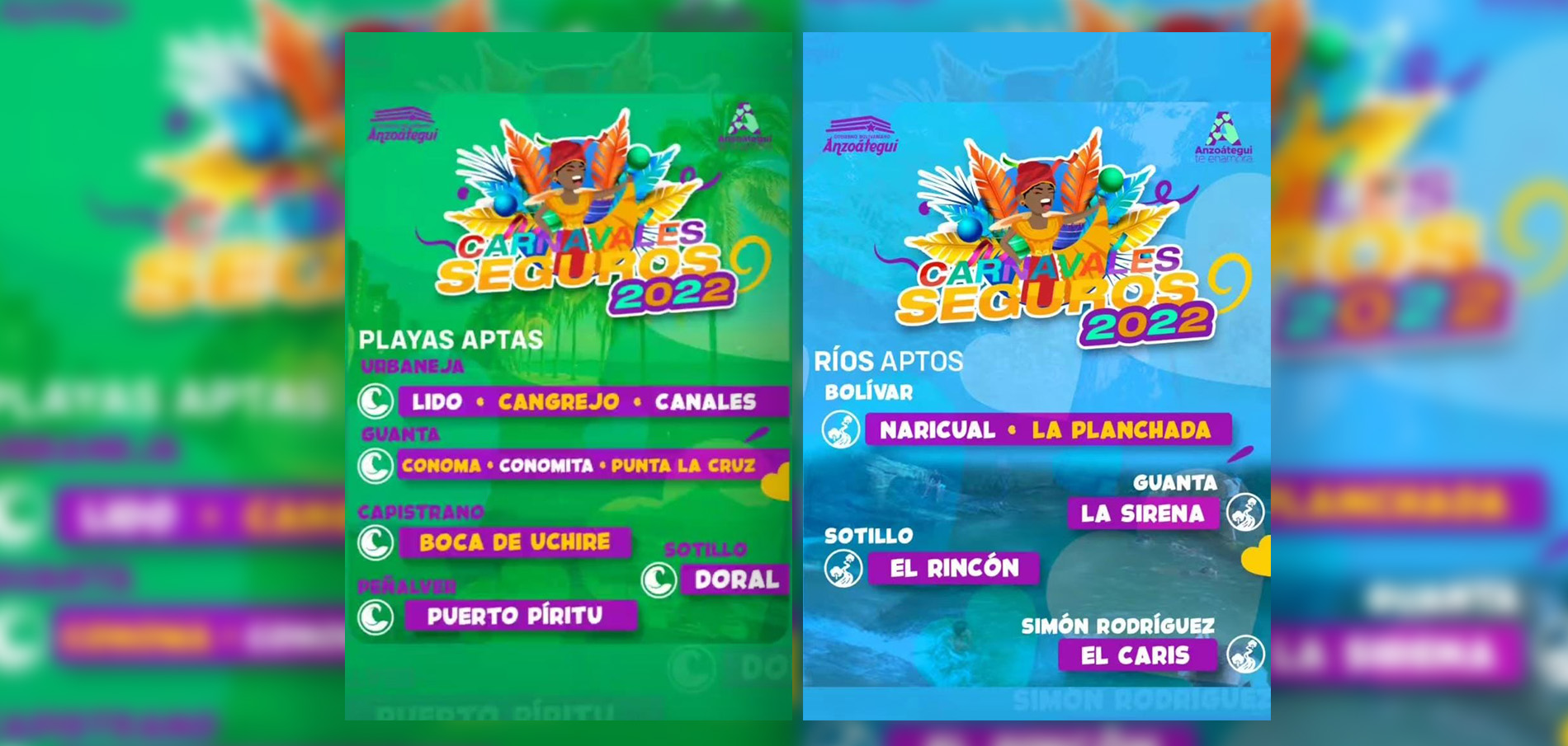 Barcelona.- La lista de playas y ríos aptos en el estado Anzoátegui para el asueto de Carnaval 2022, fue publicada a través de las redes sociales de la Gobernación.