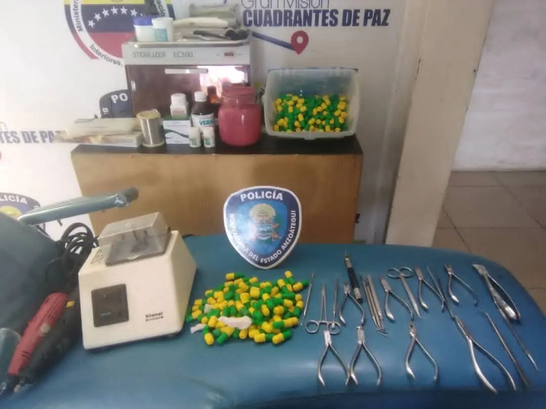 Indicó la autoridad policial que durante la operación fueron incautados: Una silla de odontología, Un esterilizador, Dos Monitores de computadora, un CPU, una lámpara Dental, dos máquinas amalgamadoras, once (11) pinzas odontológica, cuatro (4) tijeras odontológicas, un espejo Dental y materiales para ortodoncia, endodoncia y odontología general y especializada.