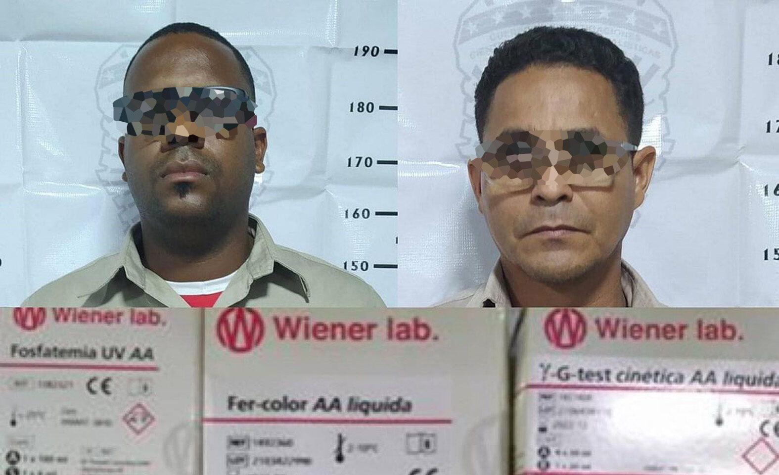 Los hombres fueron detenidos en las instalaciones del referido centro de salud, dónde les hallaron una caja de Amalaza líquida, una caja de Fer Color líquida, una caja de HDL Colesterol, una caja de GTest líquida y una caja de UV AA Fosfatemia.