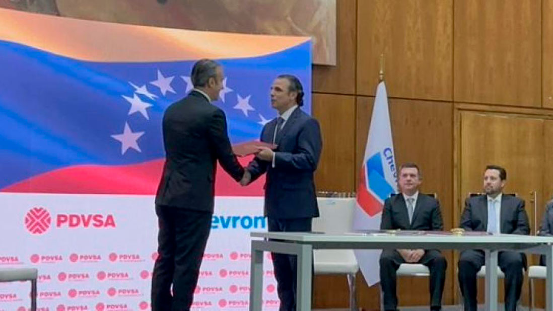 Caracas.- El ministro de Petróleo de Venezuela y altos representantes de la empresa Petróleos de Venezuela S.A (PDVSA) firmaron el viernes contratos con la petrolera estadounidense Chevron Corp (CVX.N) destinados a ayudar a reactivar la producción de petróleo del país y expandir las operaciones.