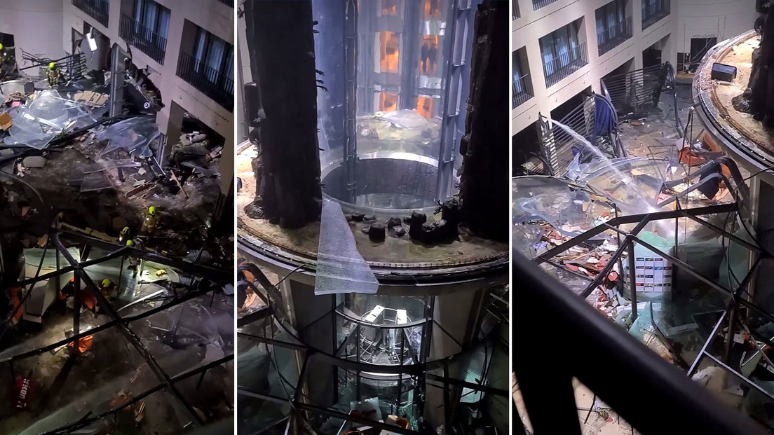 Hacia las 5.45 de la mañana (4.45 GMT) se oyó un ruido muy fuerte, señaló un portavoz de la policía, quien agregó que partes de la fachada del hotel donde se encontraba el acuario volaron a la calle.