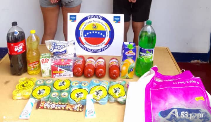 Los uniformados procedieron al arresto y trasladaron a los detenidos al comando policial donde verificaron que entre los productos hurtados estaban: cuatro mortadelas pequeñas, una caja de yesquero, dos refrescos, un jugo de litro, una harina de trigo, dos desodorantes, un aceite comestible, un chocolate, seis cajas de chimó, y una llave ajustable pequeña.