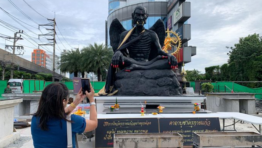 Estatua de aspecto demoníaco enfrenta a adoradores y detractores en Bangkok