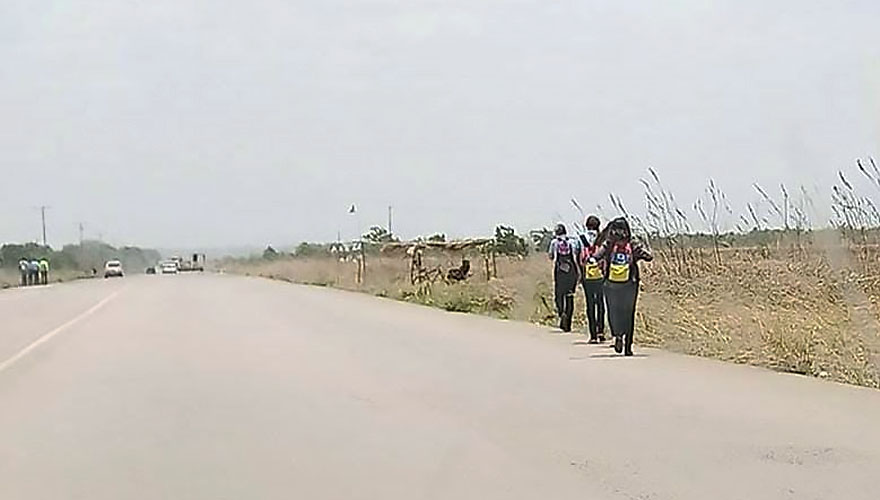 El Tigre.- Ante la falta de unidades de transporte, estudiantes indígenas de la Escuela Técnica Agropecuaria Kashaama deben caminar por la orilla de la vía El Tigre – Cantaura para ir a clases.