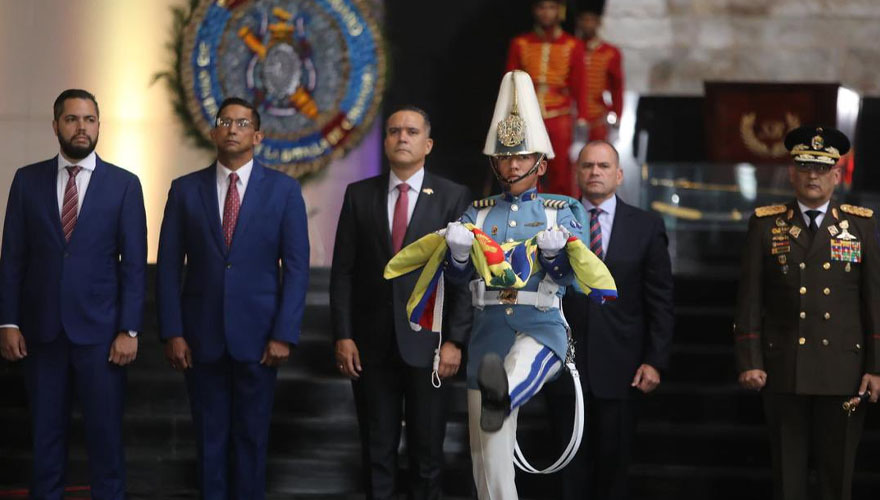 El acto estuvo liderado por el vicepresidente Sectorial para la Seguridad Ciudadana y la Paz y ministro del Poder Popular para la Justicia y Paz, A/J Remigio Ceballos Ichaso, quien recibió la Bandera Nacional, para luego entregar a los cadetes de la Academia Militar de Venezuela y ser desplazada por el patio de honor hasta el asta principal para ser izada.