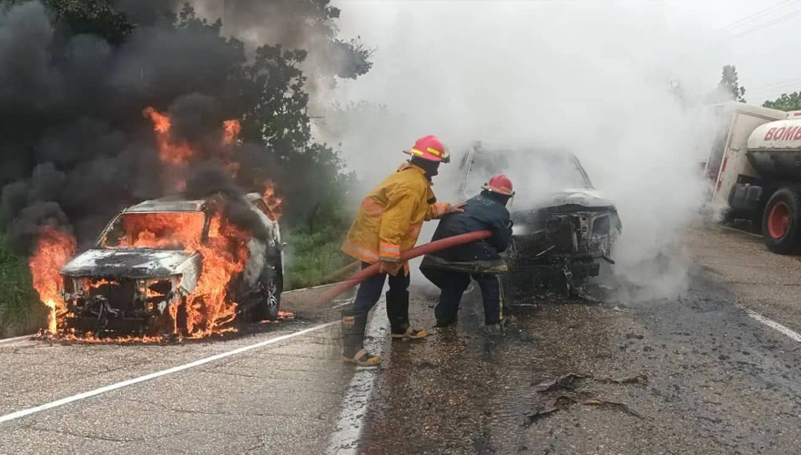Las llamas generadas por una aparente falla mecánica, causaron perdida total de la unidad, cuando se encontraba a pocos metros del Peaje Las Piedritas.