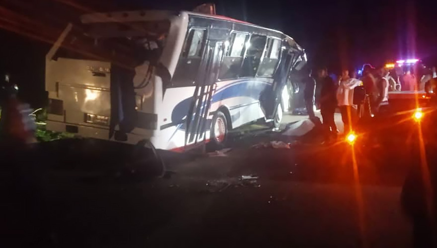 El accidente se registró en la llamada curva la Madama, donde según el reporte de organismos, el chófer perdió el control de la unidad, impactó contra una isla y luego se volcó.