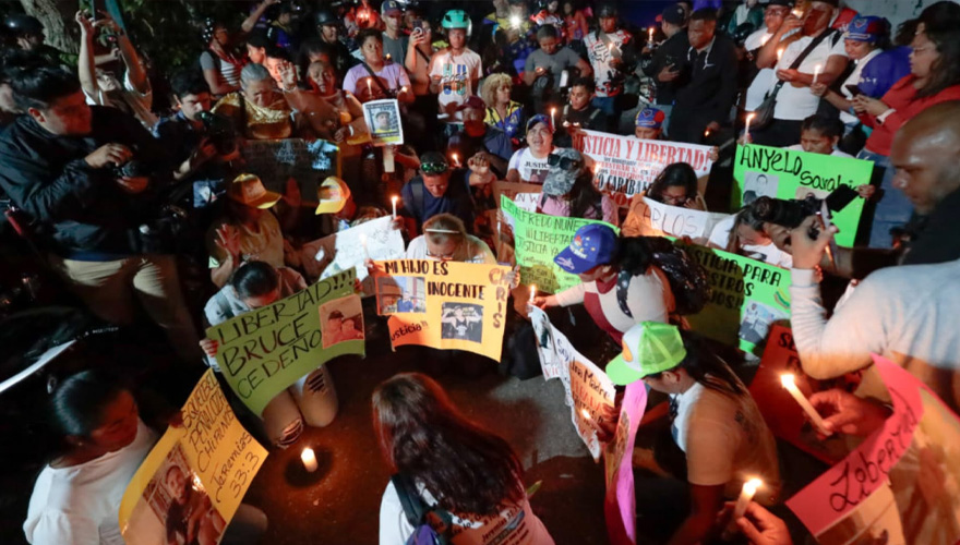 Los manifestantes, que colocaron velas frente a la legación diplomática mientras oraban, procedían de una marcha que recorrió gran parte del centro de Caracas.