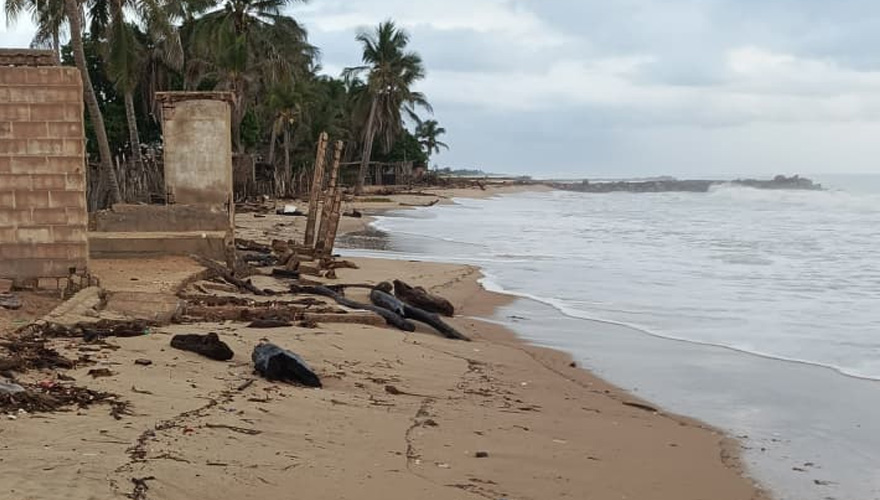 En la comunidad pesquera de Caño Salao de Barcelona, se registran afectaciones de viviendas construidas en la franja costera, sin lesionados. Desde Protección Civil informaron del desalojo preventivo de dos familias.